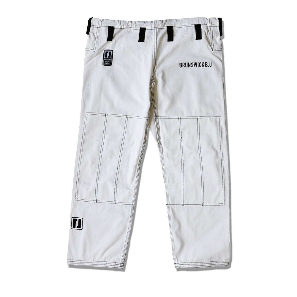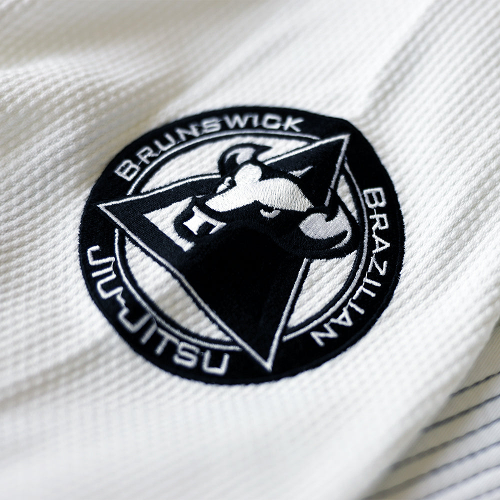 Brunswick BJJ kimonos are cut lightweight using a pre-shrunk 450gsm cotton pearl weave. The BJJ gi features contrast stitching, embroidered logos, and tapered linings. Cotton pants are light yet durable which makes them ideal for competition. They feature multiple belt loops and a stretch drawstring for a perfect fit.